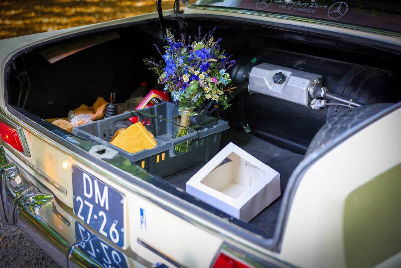 En die bloemenvaas in de kofferbak; je moet er maar aan hebben gedacht!